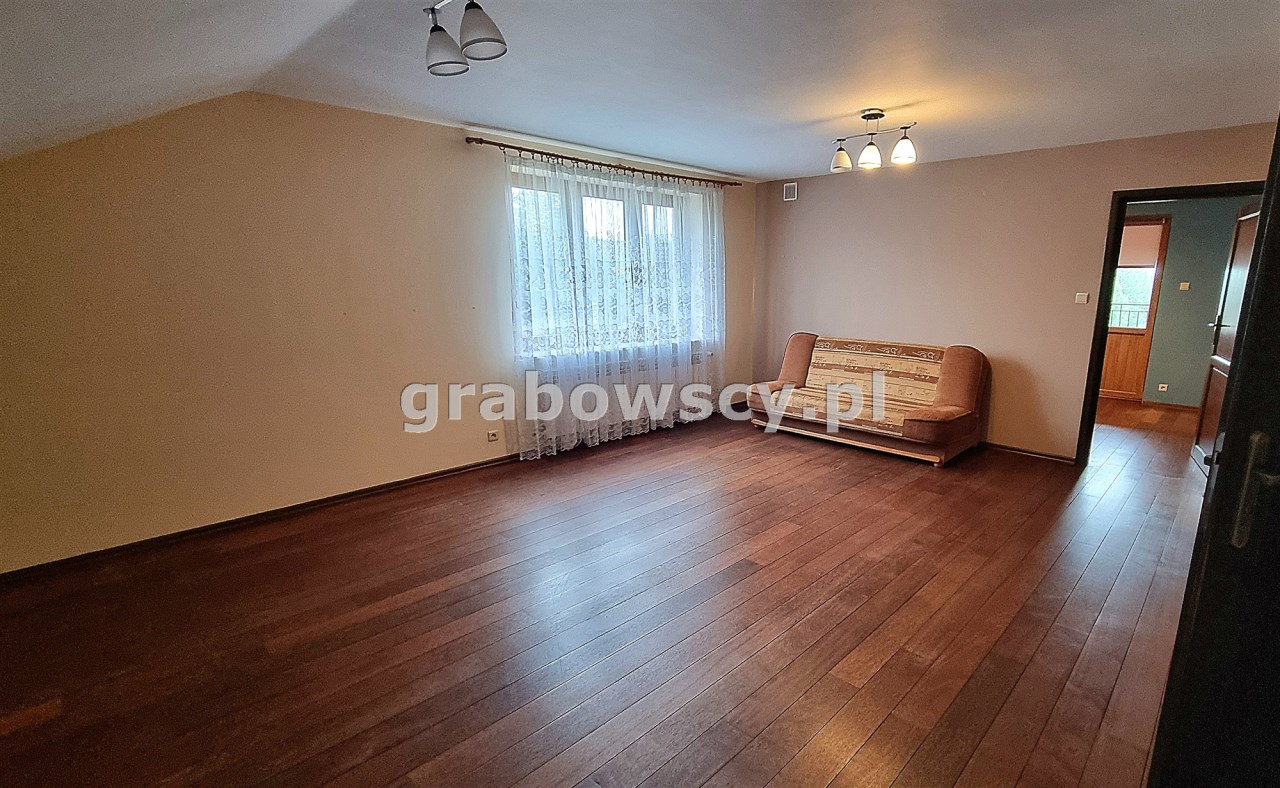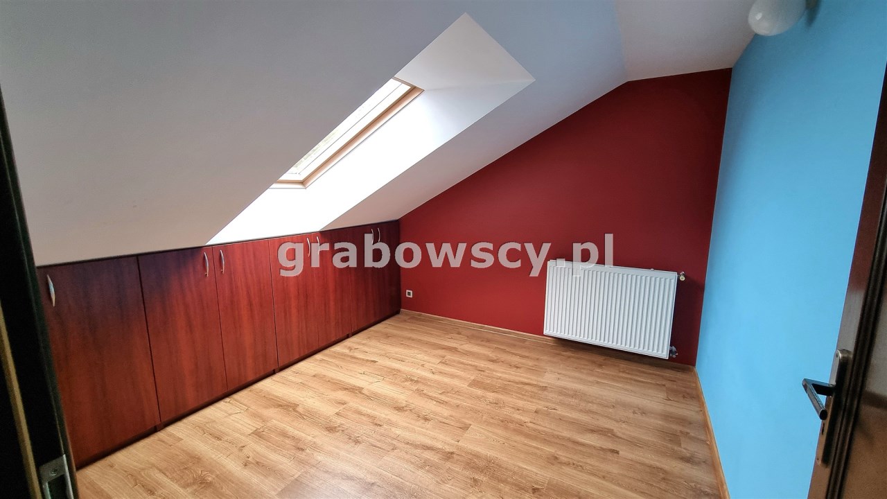 Na piętrze są: duży salon oraz trzy sypialnie i łazienka z prysznicem.