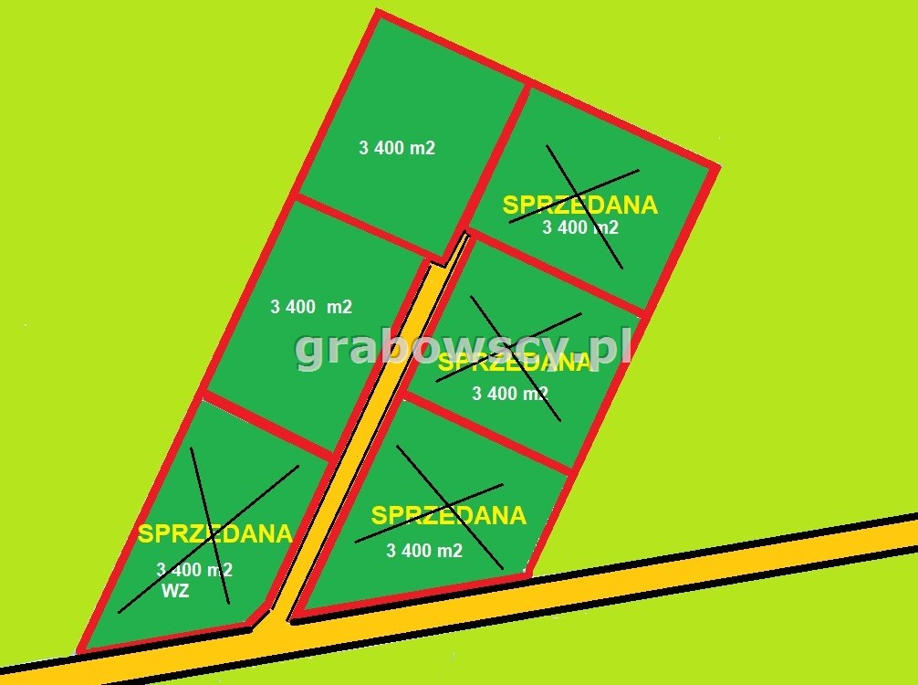 Pomiędzy działkami wytyczona jest droga wewnętrzna, zapewniająca dojazd do poszczególnych działek.