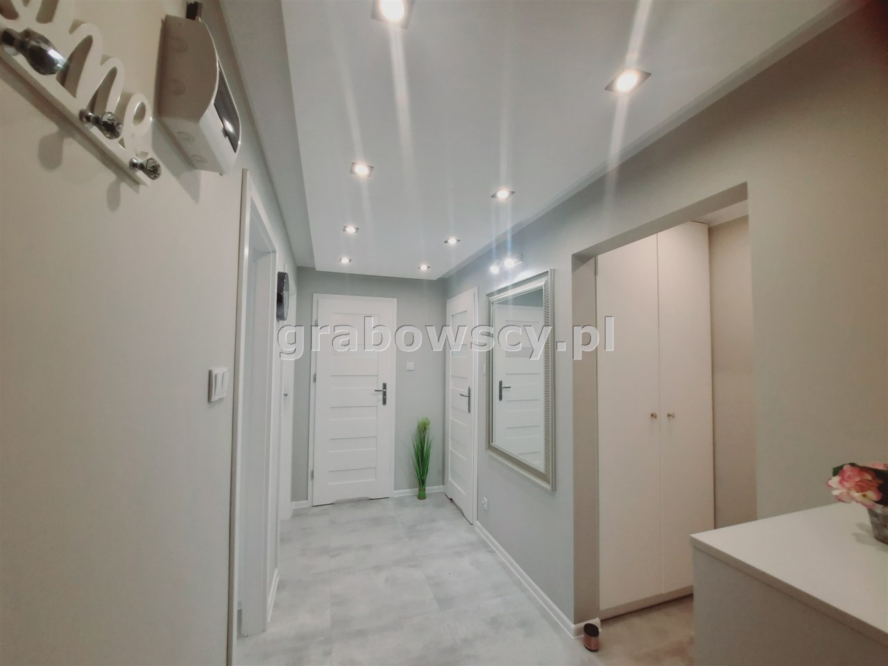 Mieszkanie jest w bardzo dobrym stanie technicznym – wysoki standard, dwustronne. Wnętrze wykończone zostało drogimi materiałami wysokiej jakości. W kuchni, łazience i w przedpokoju - podwieszany sufit z halogenami.