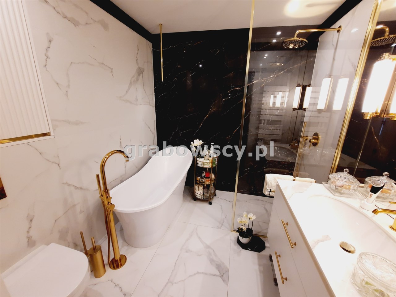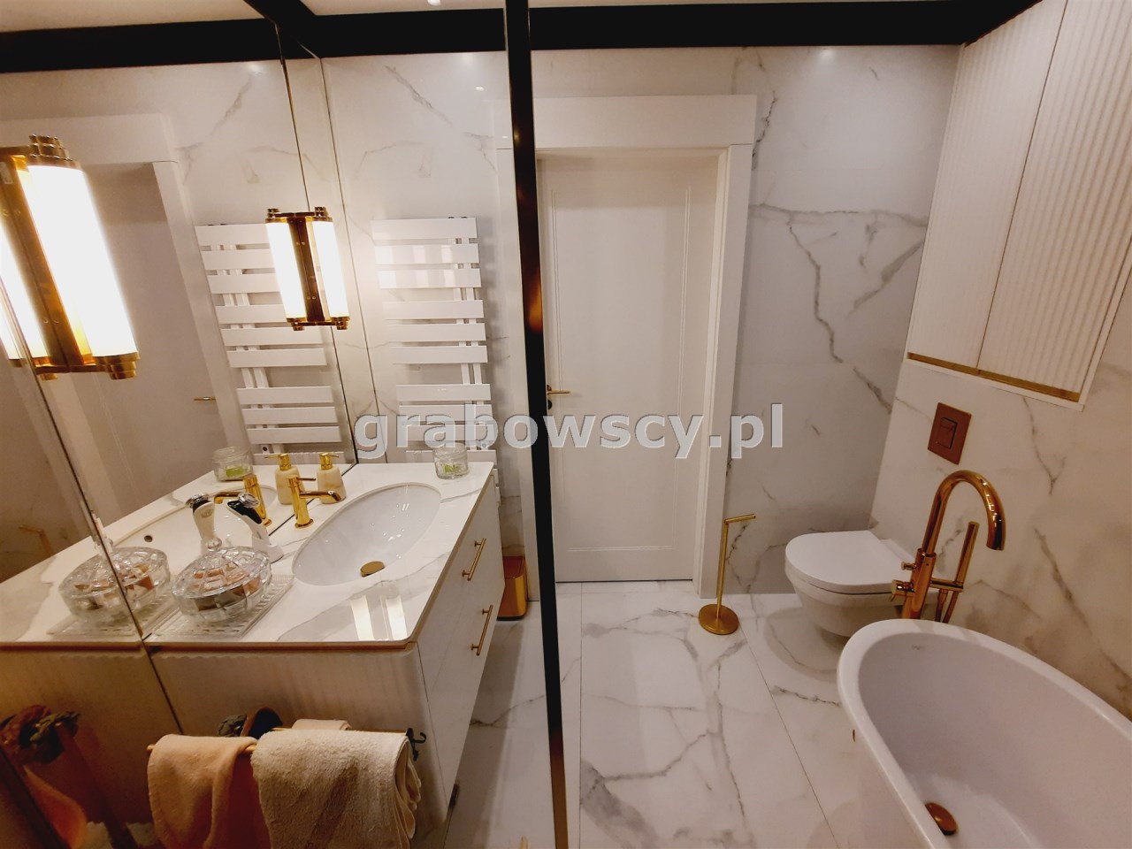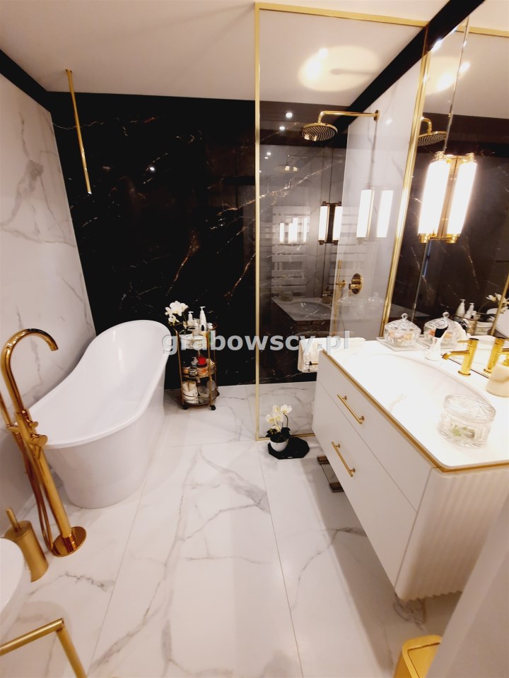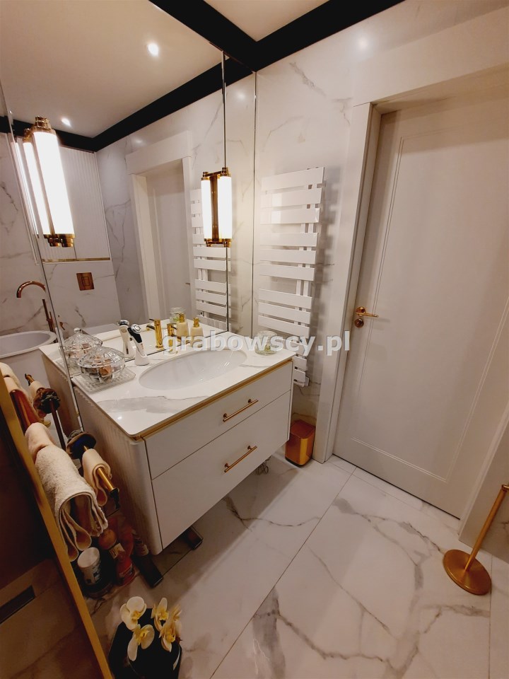Apartament jest w bardzo dobrym stanie technicznym o wysokim standardzie, środkowy. Wnętrze wykończone zostało drogimi materiałami wysokiej jakości z dbałością o każdy detal.