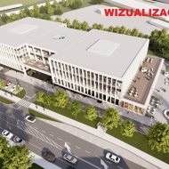 Od strony zachodniej działki powstanie nowa część, składająca się z dwóch segmentów. Na dachu przewidziano zielony taras dla pracowników biur.